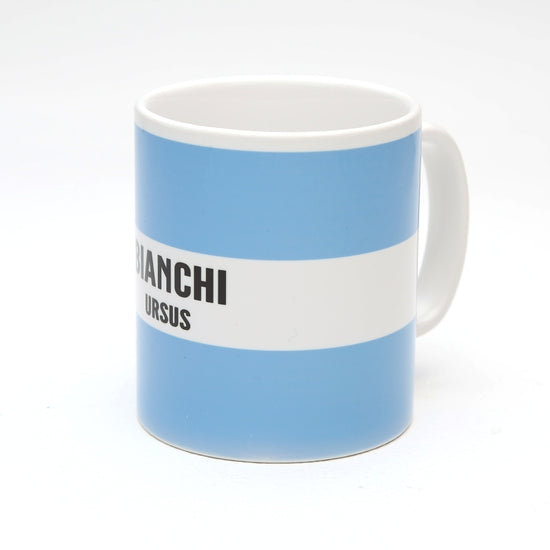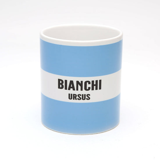 The Bianchi Retro Cycling Mug combines functionality with nostalgia. This Bianchi design comes with a white inner and handle with the Bianchi print wrapped around it. A 10oz mug makes it perfect for your pre or post ride brew.