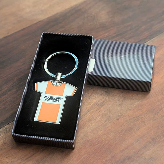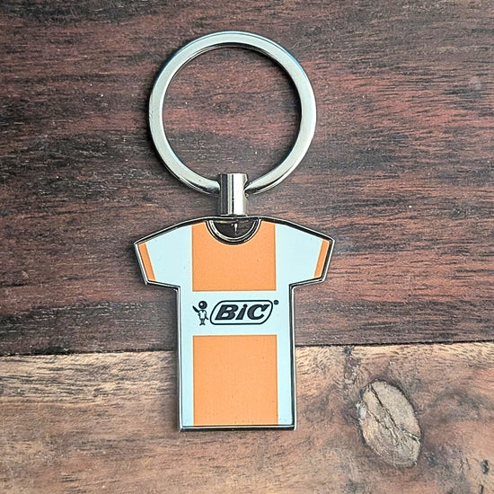 Celebrate the classic era of cycling with this BIC Retro Cycling Keyring. Featuring the iconic white and orange team jersey design made famous by riders like Jacques Anquetil, it’s a timeless tribute to one of cycling’s most stylish teams.