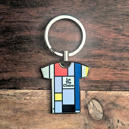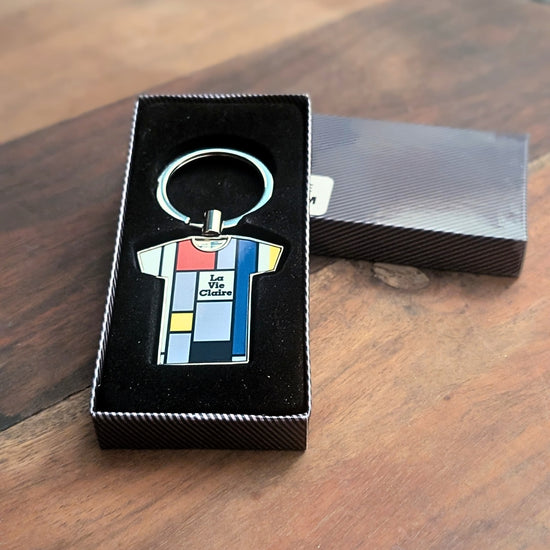 Show your love for cycling’s most artistic era with this La Vie Claire Retro Cycling Keyring. Featuring the iconic Mondrian-inspired jersey design, it pays tribute to Bernard Hinault, Greg LeMond, and one of the most stylish teams in history. A colourful keepsake for true cycling fans.